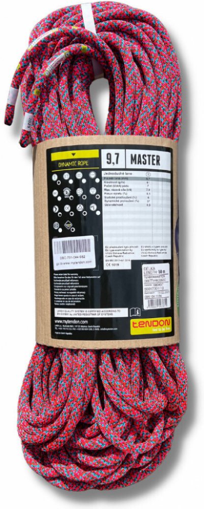 Dynamické lano Tendon Master 9.7 mm TeFIX je bezpečné a odolné lano s delší životností. Technologie TeFIX zajišťuje permanentní spojení jádra s opletem a nulový posun opletu. Delší životnost a také lepší manipulaci zajišťuje SBS oplet. Lano má také úpravu Complete shield.