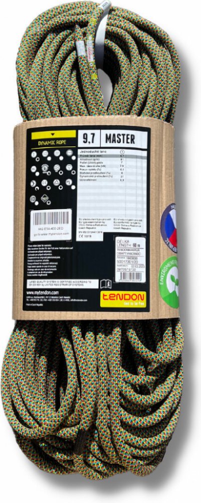 Dynamické lano Tendon Master 9.7 mm TeFIX je bezpečné a odolné lano s delší životností. Technologie TeFIX zajišťuje permanentní spojení jádra s opletem a nulový posun opletu. Delší životnost a také lepší manipulaci zajišťuje SBS oplet. Lano má také úpravu Complete shield.