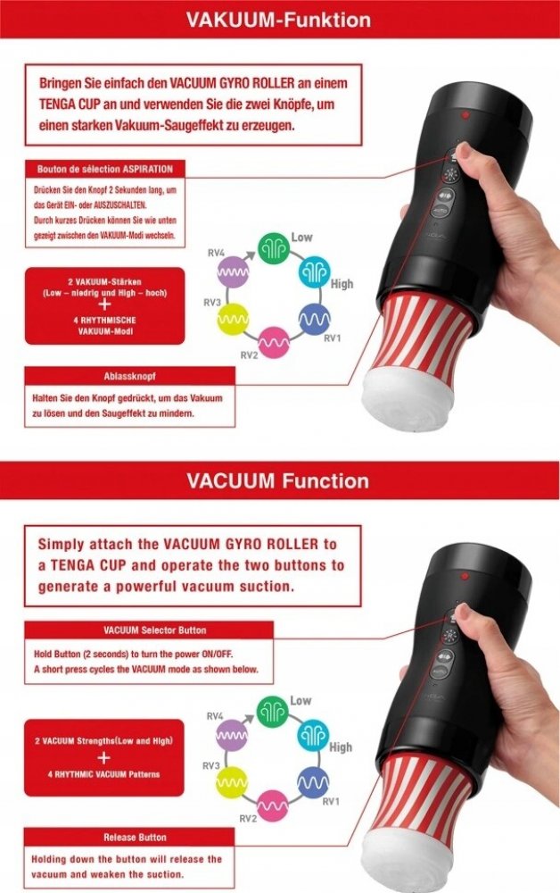 Objevte moderní masážní přístroj značky Tenga, vybavený pokročilou technologií rotace a podtlakovým systémem, který poskytuje bezkonkurenční funkčnost a pohodlí při používání. Model Vacuum Gyro Roller je akumulátorové zařízení navržené pro kompatibilitu s řadou hrnků Rolling Cup a vybranými modely vakuových hrnků Tenga (kromě řady U.S. a SD). Skvěle se hodí pro ty, kteří hledají inovativní řešení a pohodlnou obsluhu.