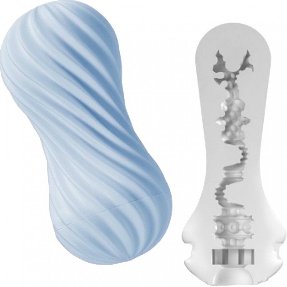 Pánský masturbátor s vnitřní spirálovitou strukturou - navinutí a odvinutí.