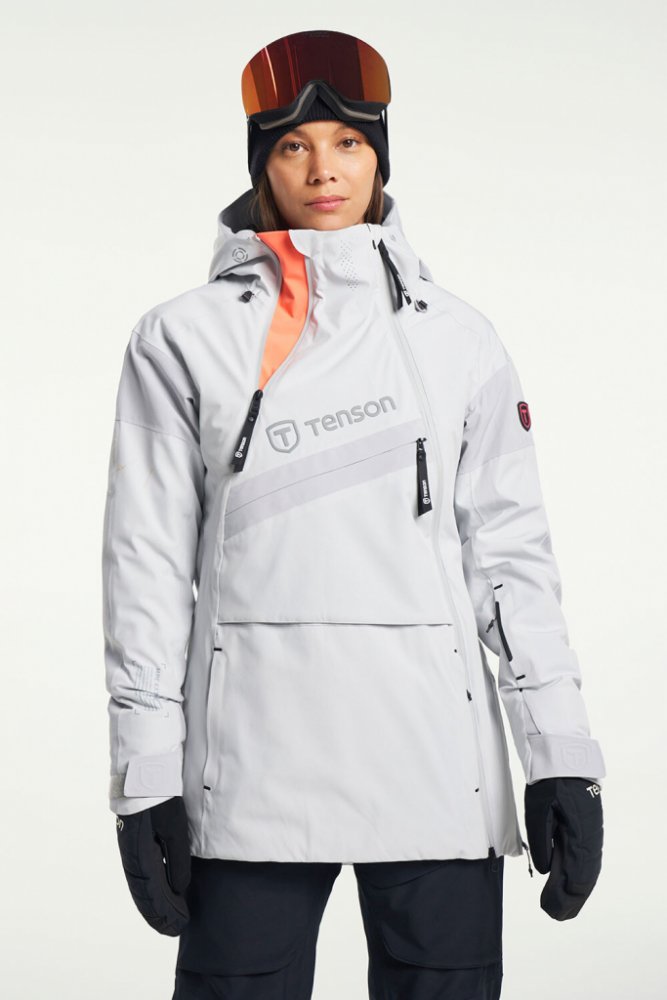 Dámská lyžařská parka s nepromokavou membránou Tenson Aerismo Jakorak ve světle šedé variantě.