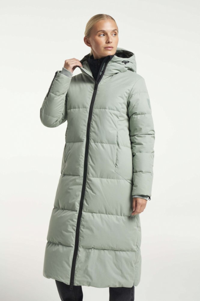 Dámský dlouhý péřový kabát Tenson Shanna 2.0 ve světle zelené barvě.