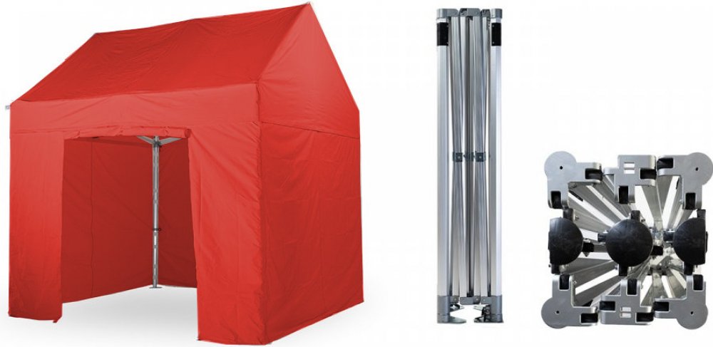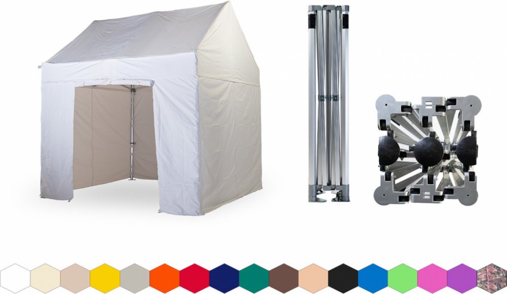 • vhodný pro případy, kdy je třeba ho spojit s budovou, pergolou nebo markýzou, Ideální pro farmářské trhy
