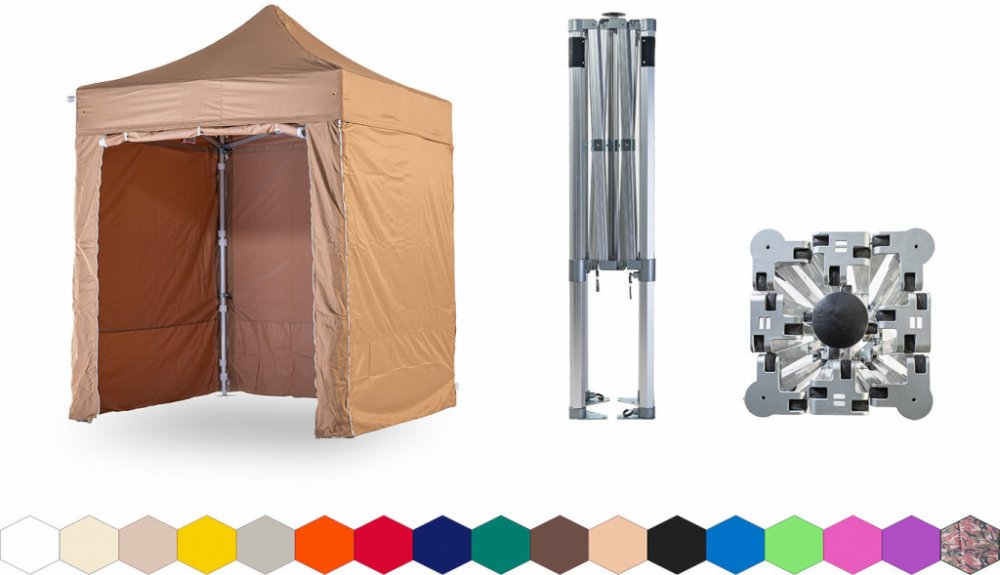 Profesionální výrobek s mohutnou celohliníkovou konstrukcí nejvyššího řádu s hexagonálním průřezem nohou. Název HEXAGON je tedy odvozen od tvaru konstrukčního HLINÍKOVÉHO profilu skládacího nůžkového party stanu, který je šestihranný/hexagonální. Pevnost hexagonálních profilů je mnohem vyšší než u běžně užívaných profilů čtyřhranných, které nabízí konkurence. Výrobková řada TENTino® BIG HEXAGON slaví 20 let spolehlivé služby v naší půjčovně. Představuje "mezikategorii" mezi řadami TENTino® SMALL HEXAGON a premiovou řadou TENTino® BIG HEXAGON EXTREME. Silná ocelová pozinkovaná patka stanu se třemi velkými otvory pro masivní roxorové kotvící hřeby poskytuje nejlepší možnost pro kotvení na trhu. Žádná kotvící lana v okolí party stanu nejsou třeba. Náš stan prakticky přibetonujete k povrchu v rámci svého půdorysu, aniž by Vás cokoliv omezovalo v okolním prostoru. Extrémní možnost ukotvení společně s absencí plastových konstrukčních spojovacích dílů zaručuje, že party stan TENTino® BIG HEXAGON spolehlivě slouží i v takových povětrnostních podmínkách, kde již konkurenční stany kolabují a s nimi i Vaše investované prostředky.