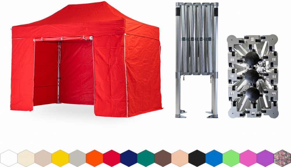 1x střecha + 4x boční plachta – 3x plná, 1x s dveřmi