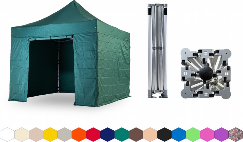 1x střecha + 4x boční plachta – 3x plná, 1x s dveřmi