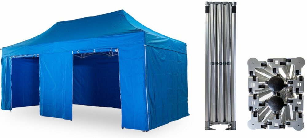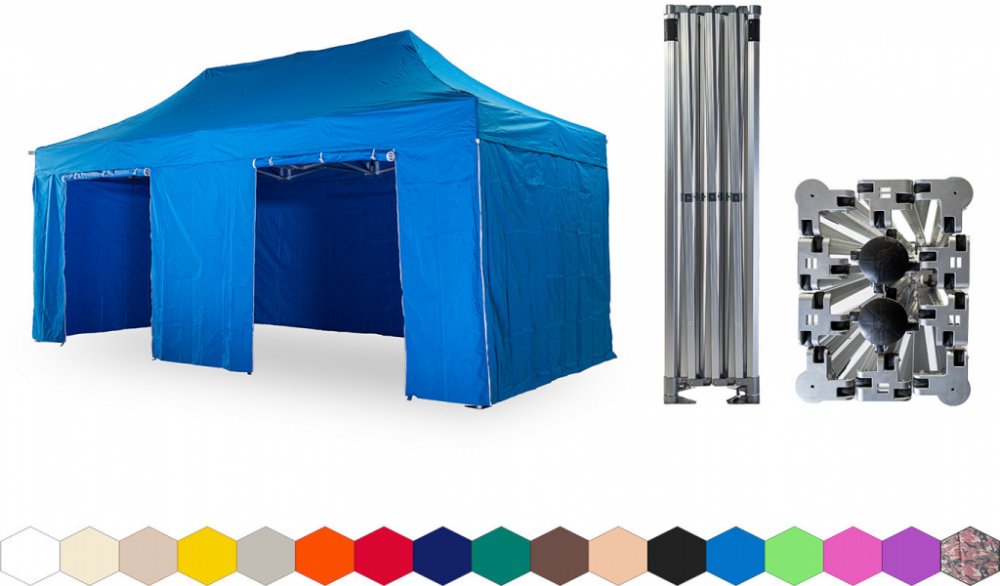 1x střecha + 4x boční plachta – 3x plná, 1x s dvěma dveřmi