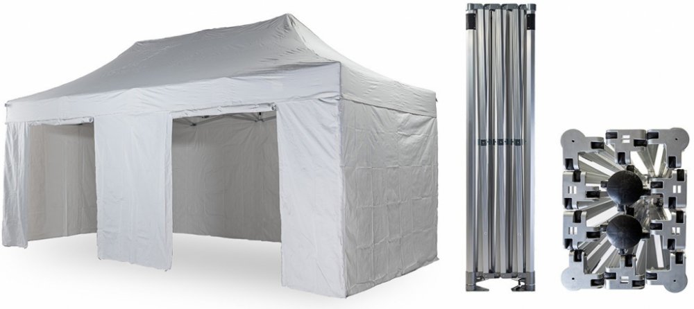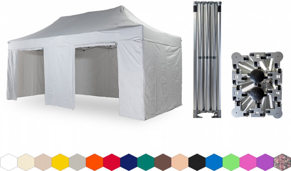 1x střecha + 4x boční plachta – 3x plná, 1x s dvěma dveřmi