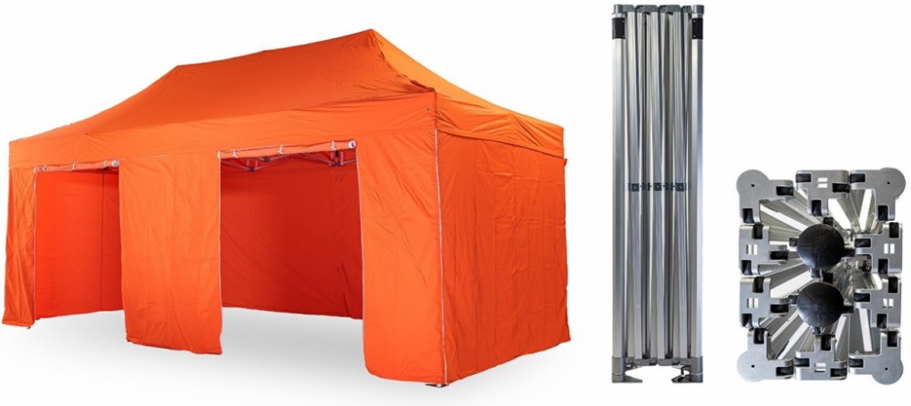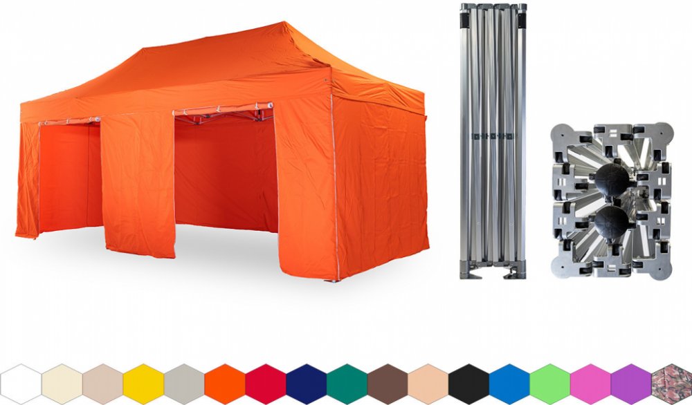 1x střecha + 4x boční plachta – 3x plná, 1x s dvěma dveřmi