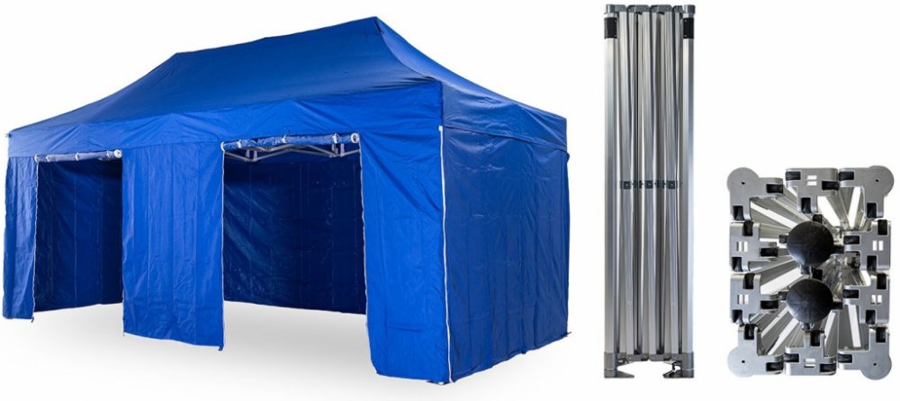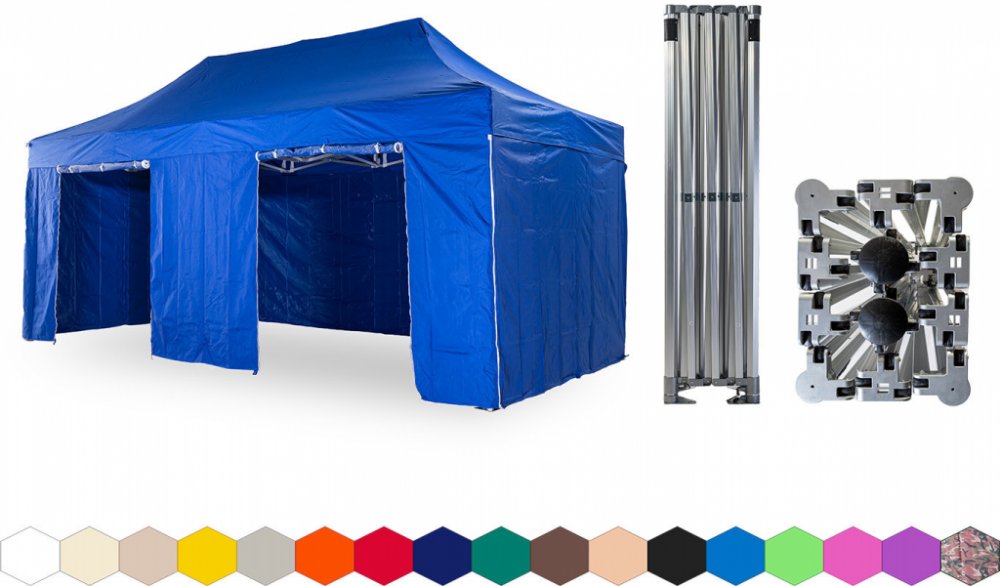 1x střecha + 4x boční plachta – 3x plná, 1x s dvěma dveřmi