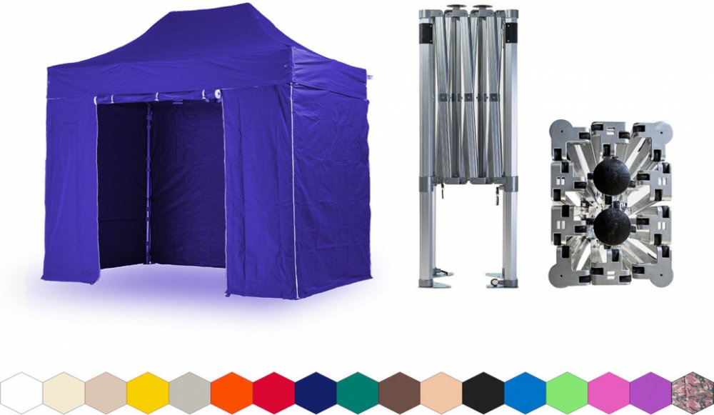1x střecha + 4x boční plachta – 3x plná, 1x s dveřmi