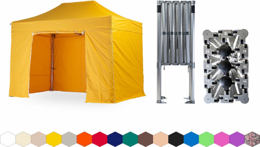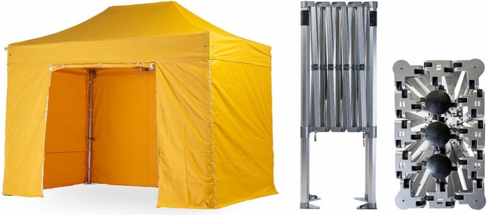 1x střecha + 4x boční plachta – 3x plná, 1x s dveřmi