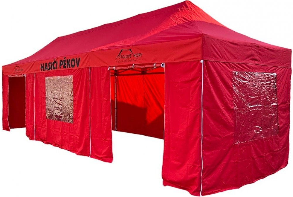1x střecha + 8x boční plachta – 4x plná, 2x s dveřmi. 2x s oknem a roletkou