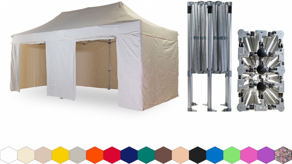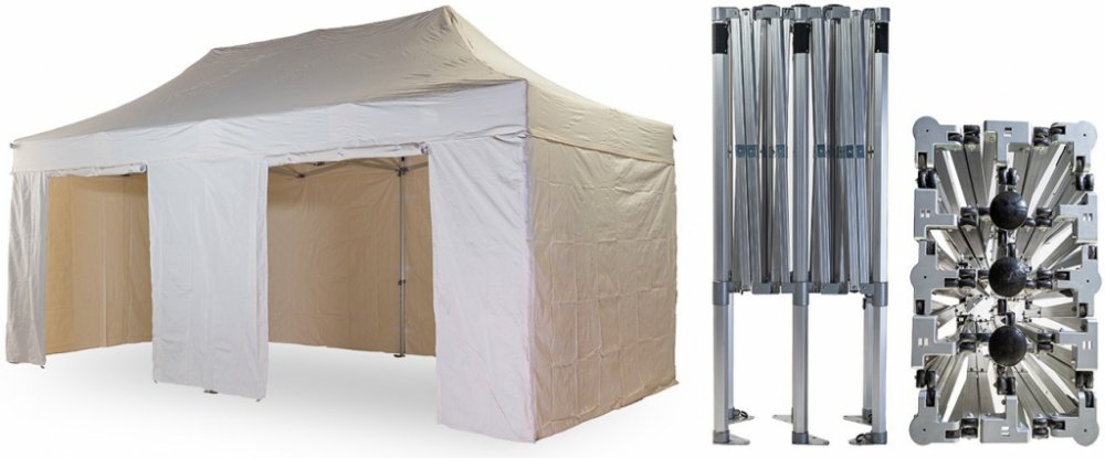 1x střecha + 4x boční plachta – 3x plná, 1x s dvěma dveřmi