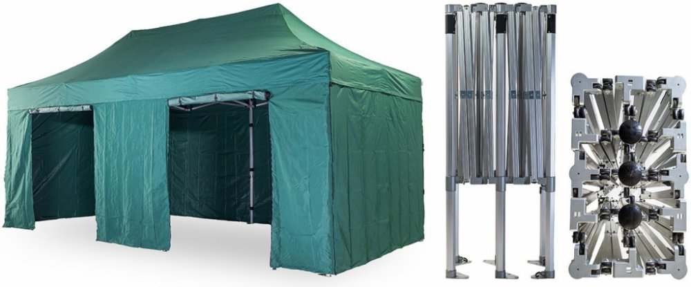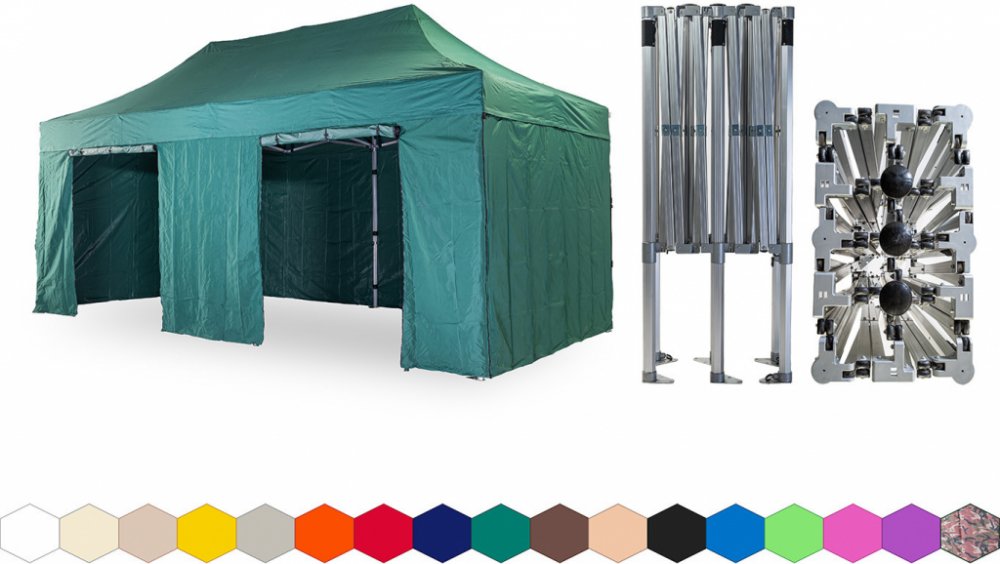 1x střecha + 4x boční plachta – 3x plná, 1x s dvěma dveřmi