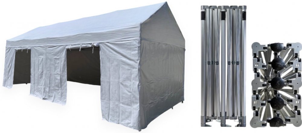 • vhodný pro případy, kdy je třeba ho spojit s budovou, pergolou nebo markýzou, Ideální pro farmářské trhy