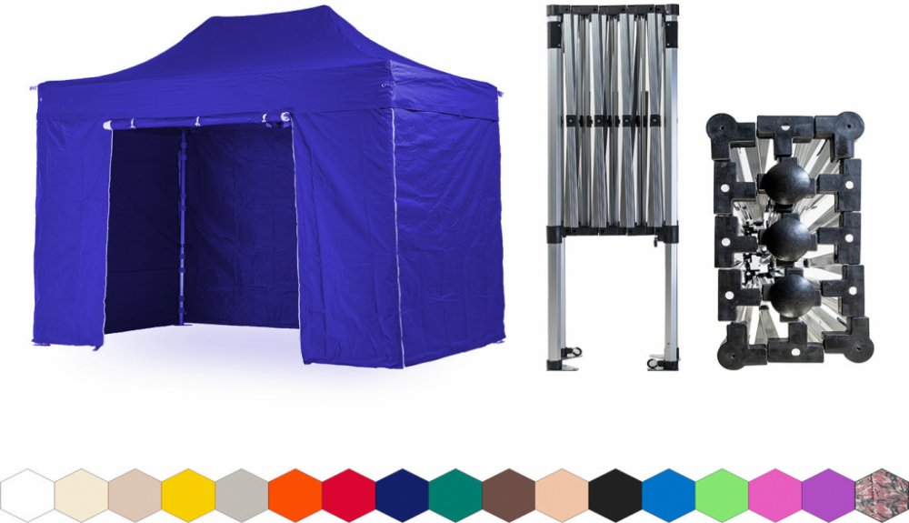 1x střecha + 4x boční plachta – 3x plná, 1x s dveřmi