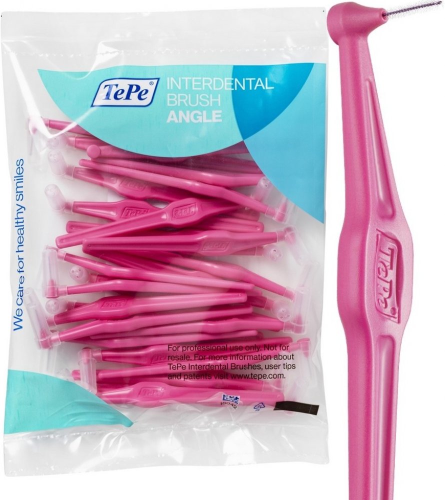 Tepe Angle, mezizubní kartáčeky s prodlouženou rukojetí, byly vyvinuty pro dokonalé vyčištění těžko přístupných mezizubních prostor. Štíhlá čistící hlava je zahnutá do pravého úhlu pro jednoduché dosažení zejména zadních mezizubních prostorů ze strany patra i jazyka. Tepe Angle je jednoduchý na použití, dlouhá, plochá rukojeť umožňuje přirozený, ergonomický úchop, podporující kontrolované a jisté ...