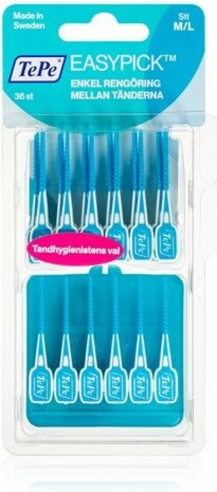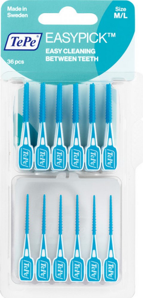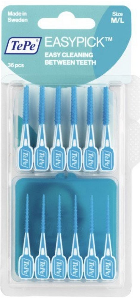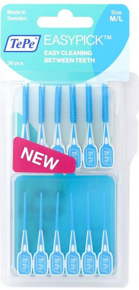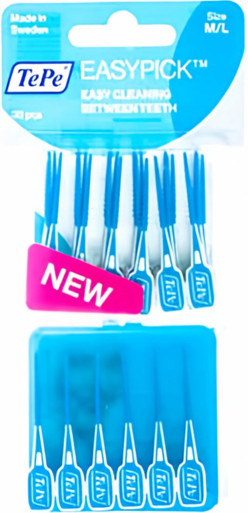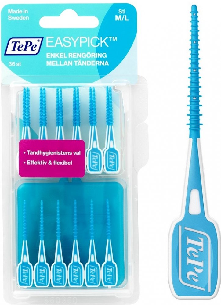 Speciální dentální pogumovaná párátka Easy Pick od Tepe. Poslouží vám jako dočasná náhrada za mezizubní kartáčky a zubní nit. Ať už jedete na dovolenou nebo pracovní cestu, vaše zuby potřebují stále stejnou péči. Noste je v tašce nebo kabelce pro případ, kdy si budete potřebovat očistit zuby po jídle. Výhodou je kvalitní materiál. Použitý plast je pevný, ohebný a zdravotně nezávadný. Každé párátko je pečlivě potaženo silikonovým povlakem s vzorkem pro skutečně efektivní a nebolestivé čištění.