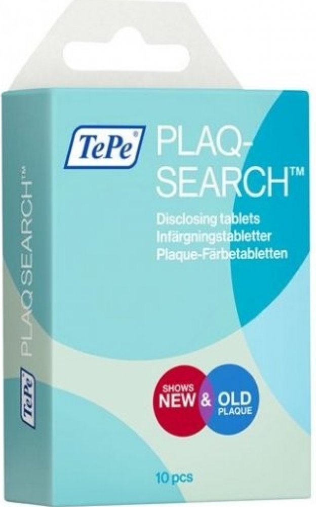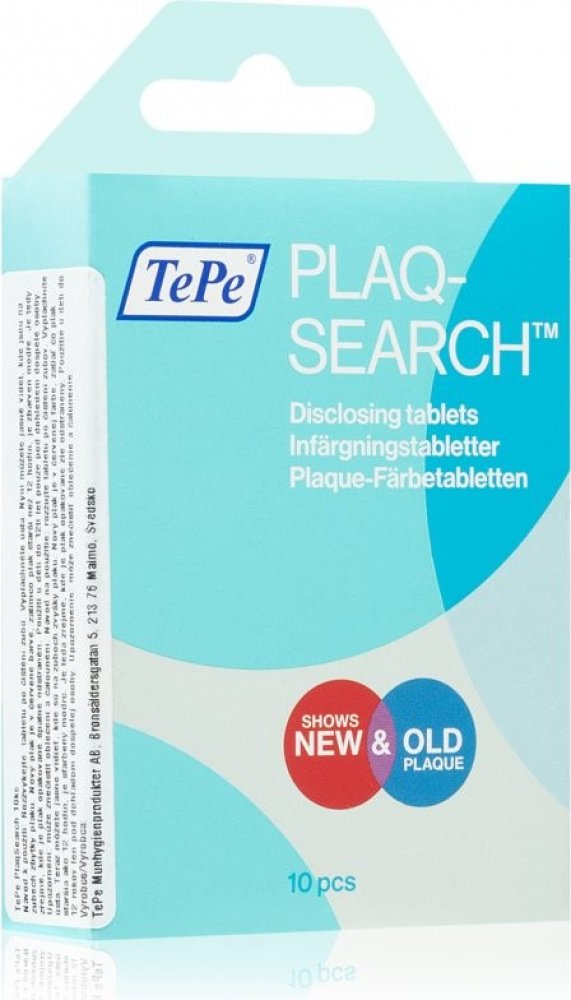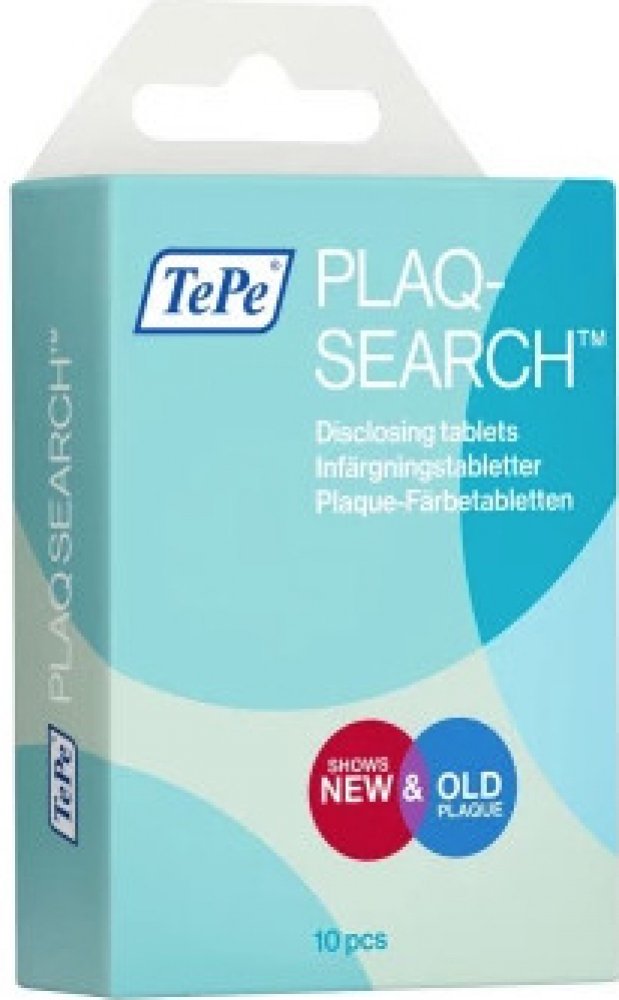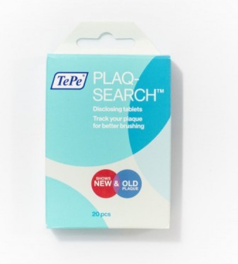 Plaqsearch zlepšuje efektivitu čištění zubů.Ukazuje místa, na která je potřeba se při čištění zubů více zaměřit.Použití: Po vyčištění zubů rozžvíkejte barvící tabletu. Pokud zůstal na zubech plak, zbarví se. Novější plak se zabarví červeně, starší , více jak 12 hodin, modře. V případě zbarvení je nutné čištění opakovat. Rozlišení plaku podle zabarvení je velmi důležité, protože starší plak je škodlivější.