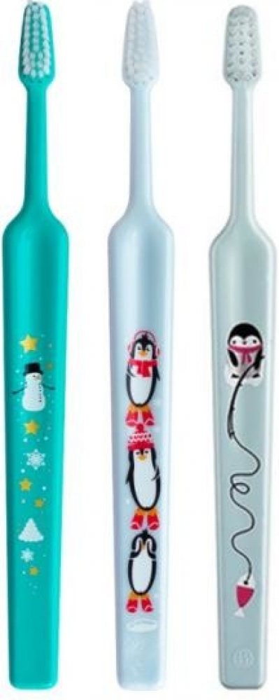 TePe Selec Winter Compact x-soft je extra měkký zubní kartáček s motivy balónů a draků. Malá zužující se hlavička je hustě osázená rovně zastřiženými svazky štětinek. Vynikající ergonomické držátko usnadňuje zejména dětem správné držení. Osvědčené i při čištění dětských zoubků dospělými. Krček kartáčku lze...