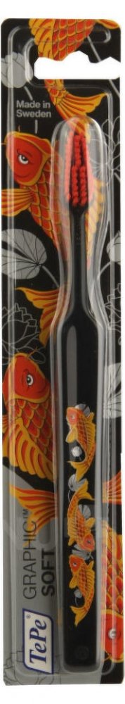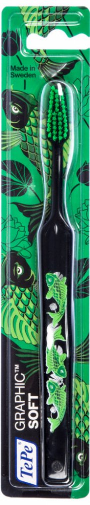 Měkký zubní kartáček TePe Selec GRAPHIC je určený pro teenagery. Ergonomická rukojeť pro snadnou manipulaci, kónický tvar hlavice pro lepší čištění stoliček. Krček kartáčku lze tvarovat podle individuálních potřeb. Stačí jej chvíli podržet pod horkou tekoucí vodou, vytvarovat a posléze ochladit ve studené vodě.