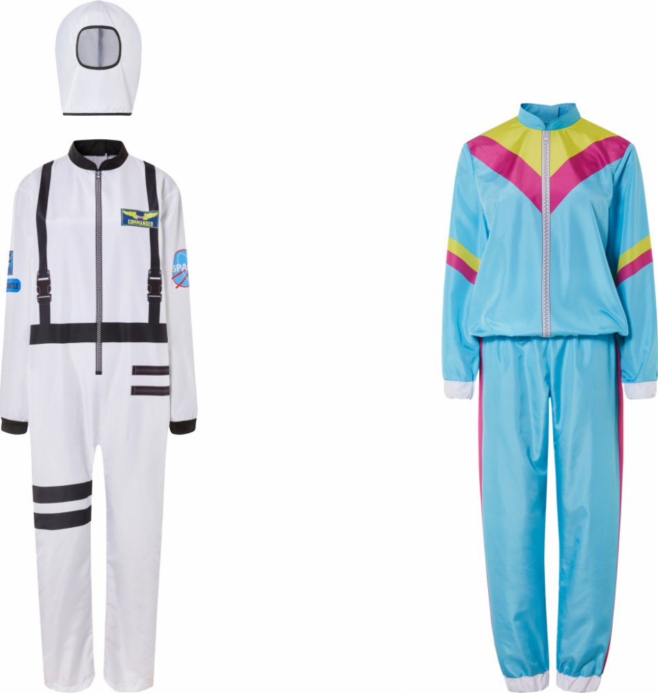 Pánský kostým "Kosmonaut" / "tepláková souprava 80. léta" Skvělý outfit na každou karnevalovou párty Zapínání na suchý zip na zádech Kosmonaut varianta Kostým se skládá z overalu a kápě Pánský kostým 2dílný Tepláková souprava 80. léta varianta Kostým se skládá z bundy, kalhot a čelenky Dámský i pánský kostým 3dílný Materiál 100 % polyester Velikost M (48/50) - L (52/54)