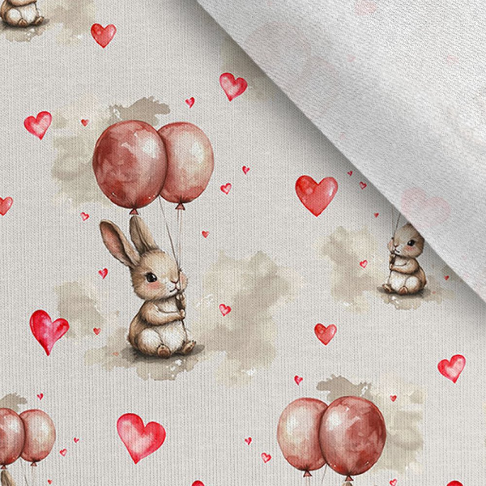 Teplákovina Takoy 150 cm zajíc s růžovými balóny
