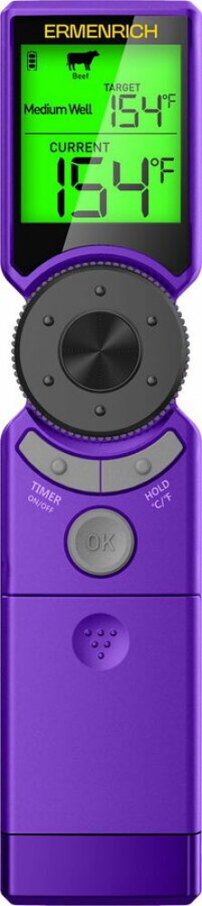 Seznamte se s Ermenrich BBQ GT10, vaším novým chytrým kuchyňským společníkem. S ním bude jakékoli maso, ať už šťavnaté kuřecí, libové krůtí, hovězí steak nebo křehké jehněčí, přesně podle vašich představ. Teploměr je vybaven přednastavenými programy pro nejoblíbenější druhy masa a automaticky navrhuje ideální cílovou teplotu a dobu přípravy pro dosažení bezchybných výsledků. Pečte, grilujte nebo připravujte barbecue s jistotou a pokaždé si vychutnejte skvělé pokrmy. Ovládání teploměru je jednoduché, protože můžete snadno přepínat mezi jednotlivými nastaveními a provádět úpravy pomocí centrálního rolovacího kolečka. Stačí jím otočit a vybrat typ a propečenost masa, nastavit cílovou teplotu nebo spustit časovač odpočítávající až 12 hodin. Teploměr vás upozorní zvukovým signálem, když je jídlo hotové nebo když vyprší nastavený časovač. Během měření teploty mění podsvícení obrazovky barvu, aby indikovalo stav, a to bílou pro nízkou teplotu, zelenou pro normální teplotu a červenou pro vysokou teplotu. Přehledný LCD displej je dobře viditelný z větší vzdálenosti a písmo je dobře čitelné.