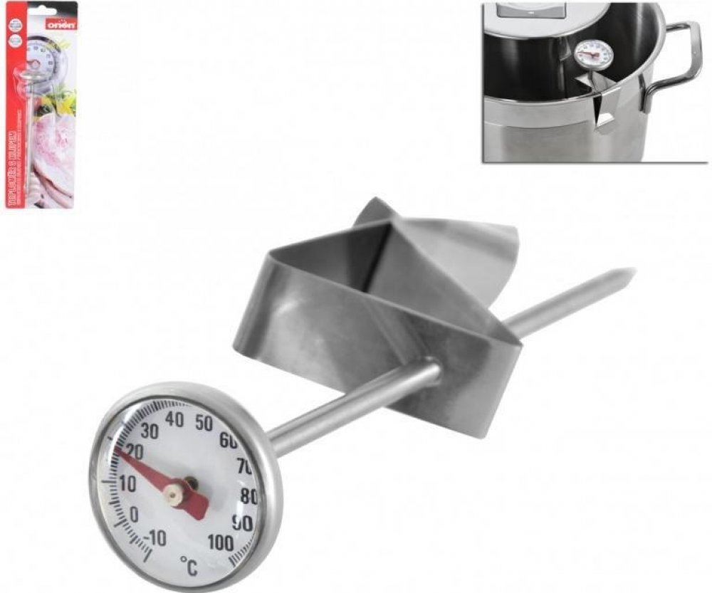 Teploměr na měření teploty vařených tekutin, na zapichování do masa i do udírny.