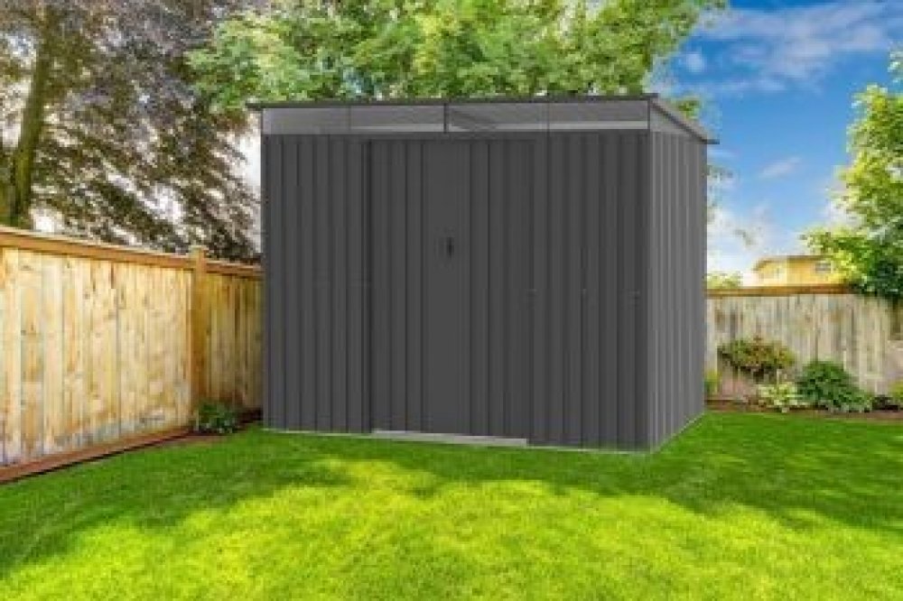 Zahradní domek vyrobený z pozinkovaného ocelového plechu s pultovou střechou. Skvělé řešení pro ukládání zahradního nářadí, sportovního vybavení apod. Úložný prostor ideální pro ukládání zahradního nářadí, zahradního nábytku, sekaček, křovinořezů, sportovního náčiní a mnohého dalšího. Dvoje velké posuvné dveře s úchyty, které je možno opatřit visacím zámkem a vysoký dveřní otvor umožňují pohodlný ...