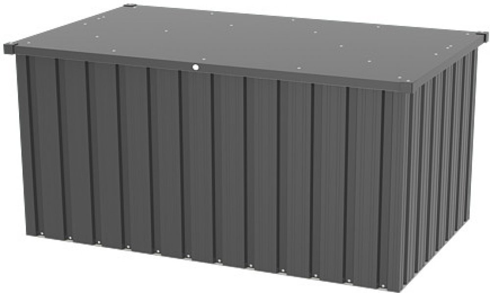 Univerzální box Store MediumKovový box je ideálním prostorem k uskladnění zahradního vybavení. Ať již jde o zahradní nářadí, polstry k zahradnímu nábytku, bazénové příslušenství, sportovní potřeby nebo hračky, všechno pohodlně uložíte.Dlouhou životnost tohoto úložného boxu zaručuje jeho povrchová úprava žárovým zinkováním a práškovým nástřikem. Box navíc nepotřebuje téměř žádnou údržbu. Elegantní antracitová barva výborně doplní každou terasu.Parametry zahradního boxu:vyrobeno z pozinkovaného ocelového plechu s práškovým nástřikemuzamykatelnýužitný objem cca 650 litrůsnadné otevírání víka díky plynovým vzpěrámvčetně základní deskybezúdržbový, odolný proti povětrnostním vlivům, trvanlivývnitřní rozměry od stěny ke stěně: 123,3 cm x 73,3 cm x 71,5 cm (šxhxv)vnější rozměry (včetně přesahu víka): 131,3 cm x 80,4 cm x 74,5 cm (šxhxv)základní vnější rozměry: 126,5 cm x 74,0 cm (šxv)