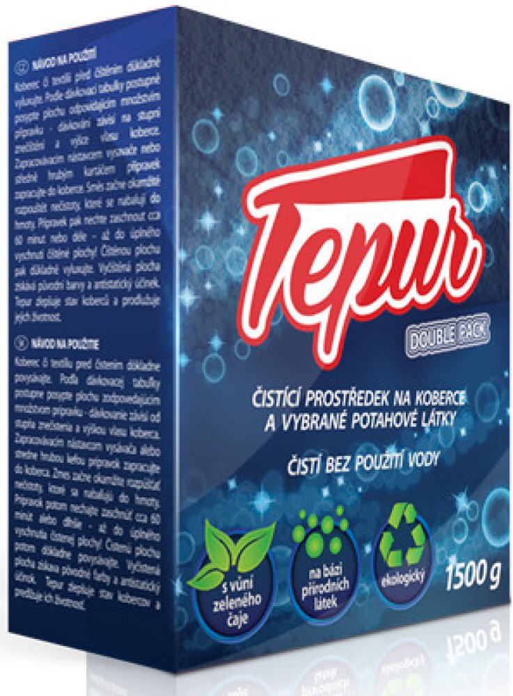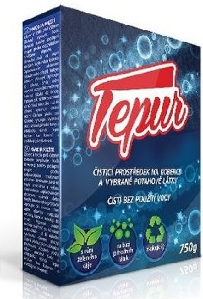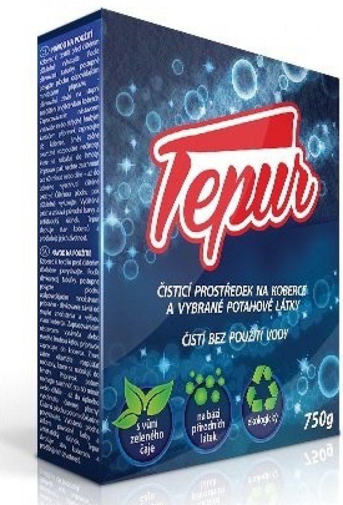 Účinný ekologický čisticí prostředek určený k suchému čištění koberců a vybraných potahových látek, vyrobený na bázi přírodních látek a to na struktuře uníkatní perlové celulóze. Díky sypké vlhké směsi TEPURU není k čištění zapotřebí vody, čili nedochází k nadměrnému provlhnutí a tím i srážení koberců a textilií. Směs vykazuje antistatický účinek, který se projevuje zlepšením vlastností vláken. Veškeré detailní informace o tomto efektivním čističi zjistíte přímo na stránkách výrobce: http://www.perloza.cz/tepur/id-85