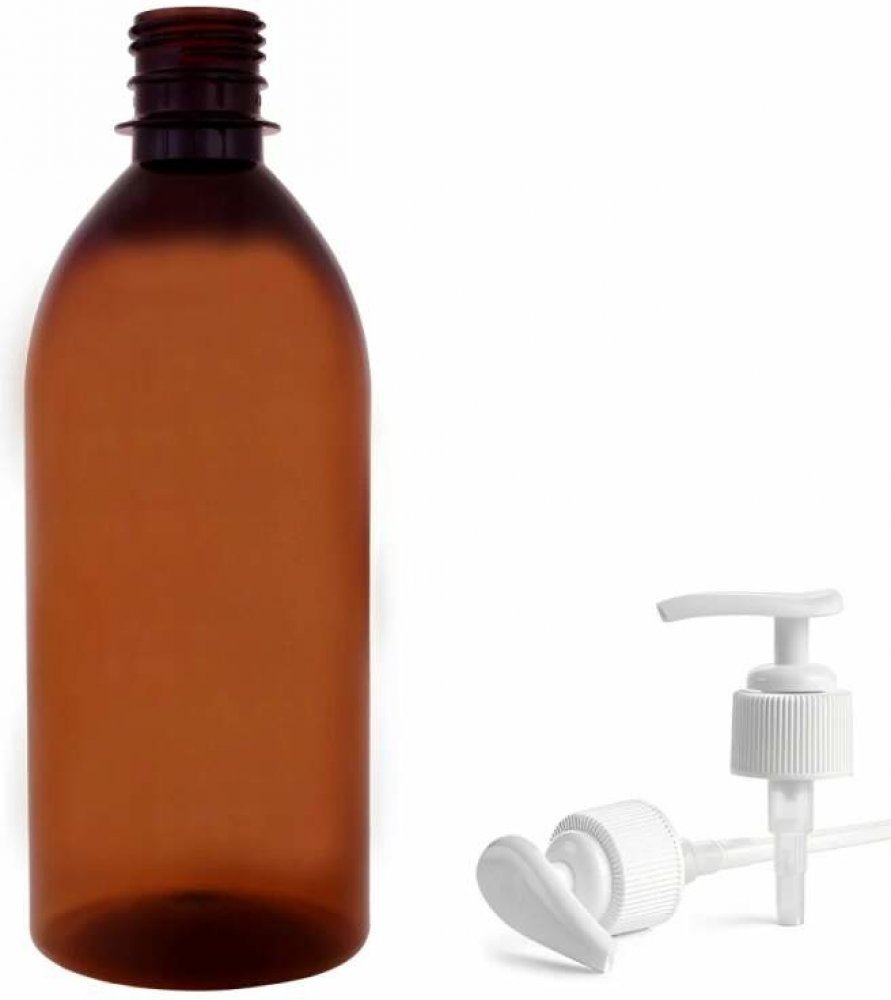 Tera Plastová lahvička hnědá s bílou pumpičkou Tera 500 ml