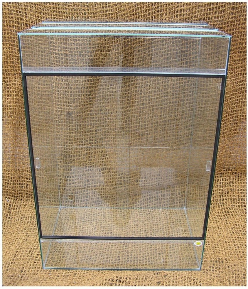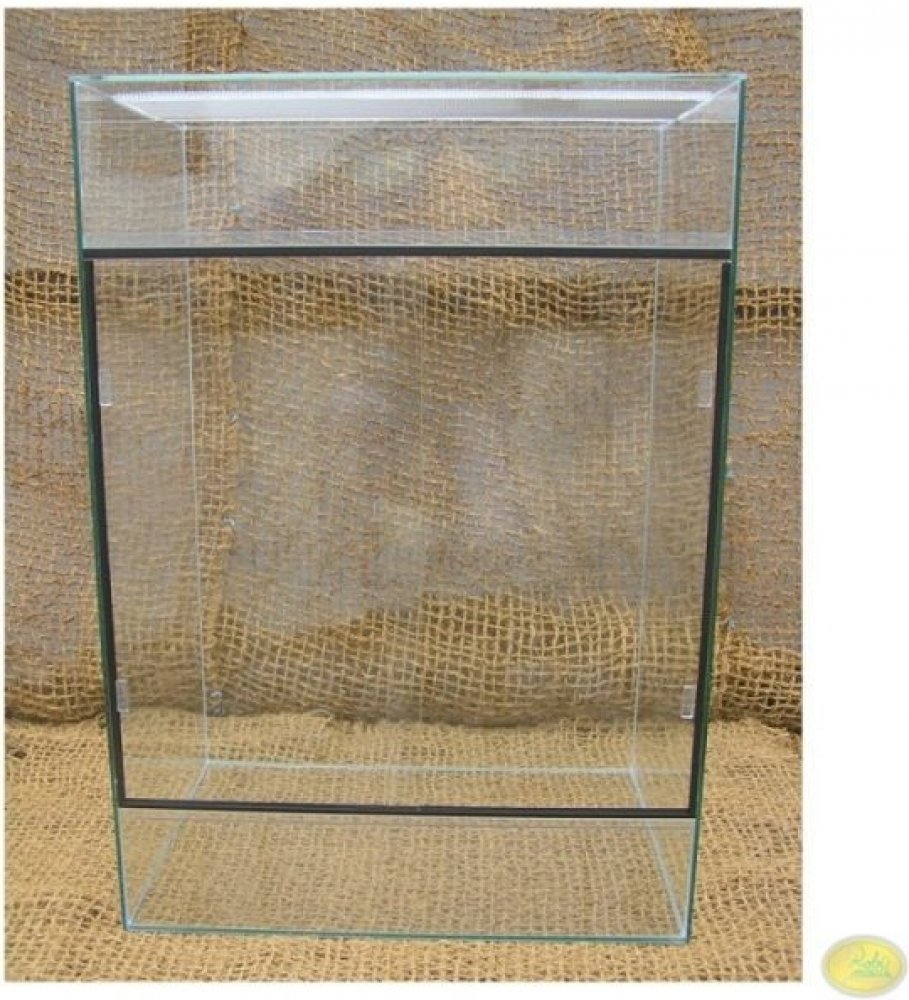Otevírání terária je řešeno pomocí dvou proti sobě posuvných skleněných dvířek - tzv. "šoupaček", které jsou vyjímatelné, mezera mezi nimi je 3 mm. Skleněná podélná výztuha, která je nalepená uvnitř terária na stropě, zaručuje pevnost i předního dílu stropu. A zároveň 2 otvory o průměru 10 mm ve výztuze mohou posloužit jako úchyt pro tepelný zdroj.V zadní stěně u dna terária je vyvrtán otvor pro vedení kabelů od spotřebičů umístěných na dně terária (např. topných kamenů, kabelů, čerpadla vodopádu atd.). Otvor má průměr 45 mm, tímto otvorem projde celá elektrická zástrčka, takže není nutné kabely přestřihávat a tím nezanikne u elektrických spotřebičů záruka. Po protažení kabelu se otvor zalepí přiloženou mřížkou a silikonovým lepidlem.Ve stropě jsou zabudovány 2 větrací hliníkové děrované plechy o šířce 70 mm pro dostatečné větrání. Tento plech lze snadno perforovat a lze jím protáhnout přívodní kabel k osvětlení nebo přichytit osvětlovací těleso. Terárium je profesionálně slepené speciálním transparentním (průhledným) silikonem. Síla skla 5 mm odpovídá normám EU. Hrany jsou dokonale zabroušené na moderní úkosové brusce.Doporučujeme přikoupit měkkou podložku.