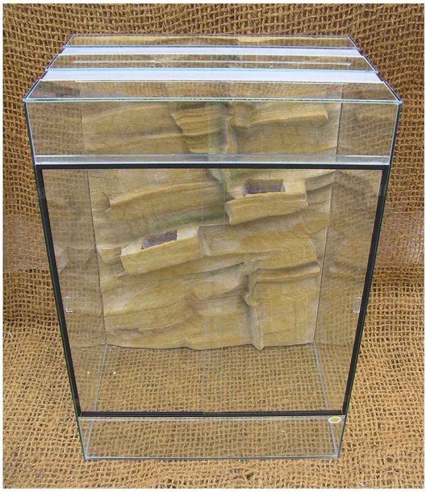 - Terárium o rozměrech 70 x 50 x 100 cm s pozadím.