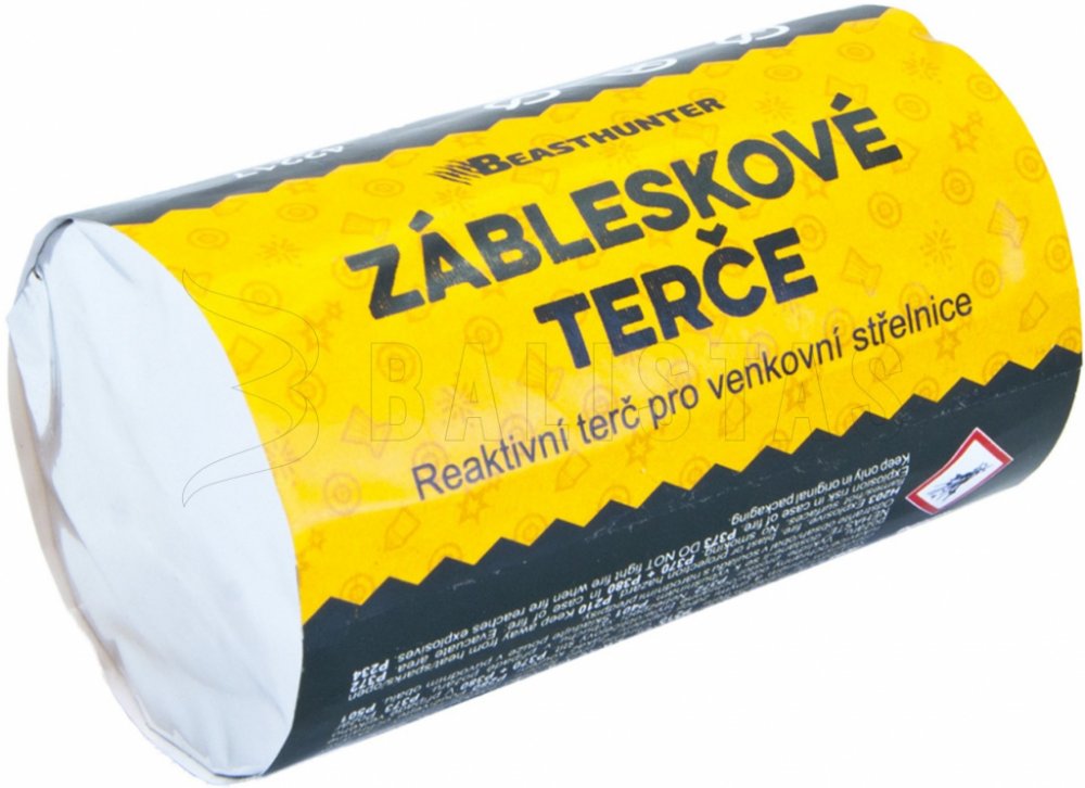 Reaktivní zábleskové terče pro venkovné použití se zábleskovým a kouřovým efektem. Pouze po zásahu blízko středu terče dojde k reakci! Dodržujte bezpečnou vzdálenost od terče. Terč je opatřen oboustrannou páskou. Jen pro venkovní použití. Terč se aktivuje zásahem zbraně minimální ráže 4,5mm a úsťové rychlosti min. 175m/s. Minimální vzdálenost terčů od sebe je 25cm. Průměr terče: 40 mm. Balení obs...