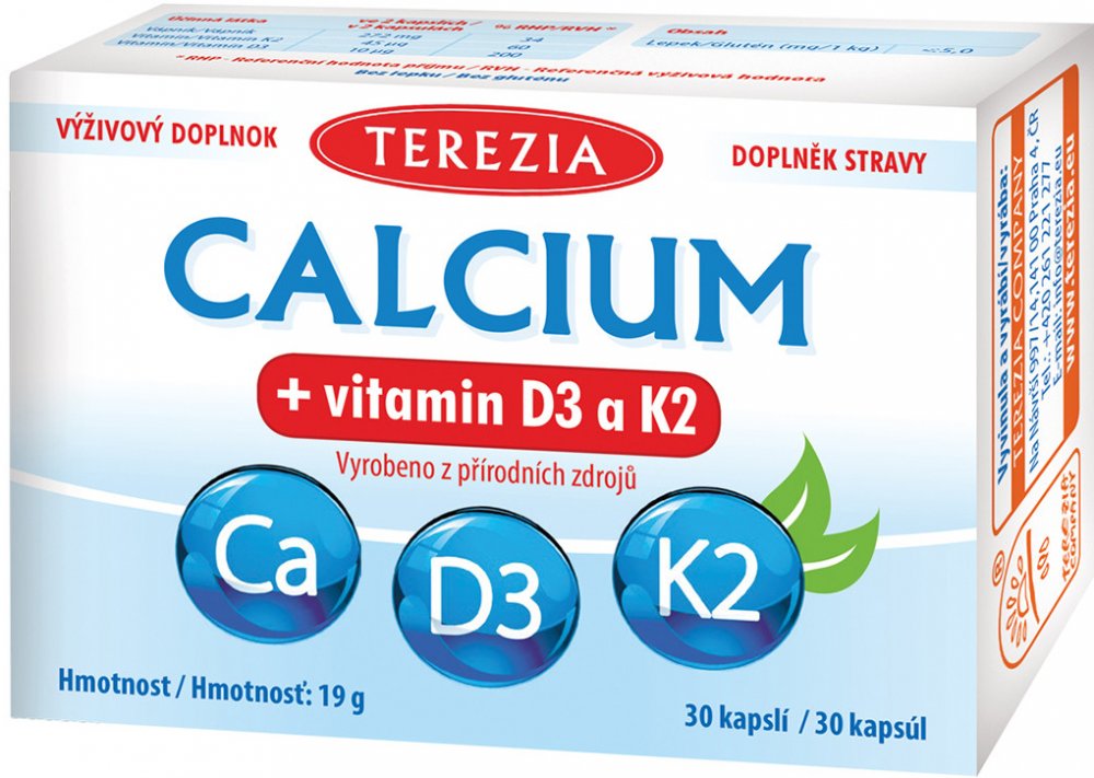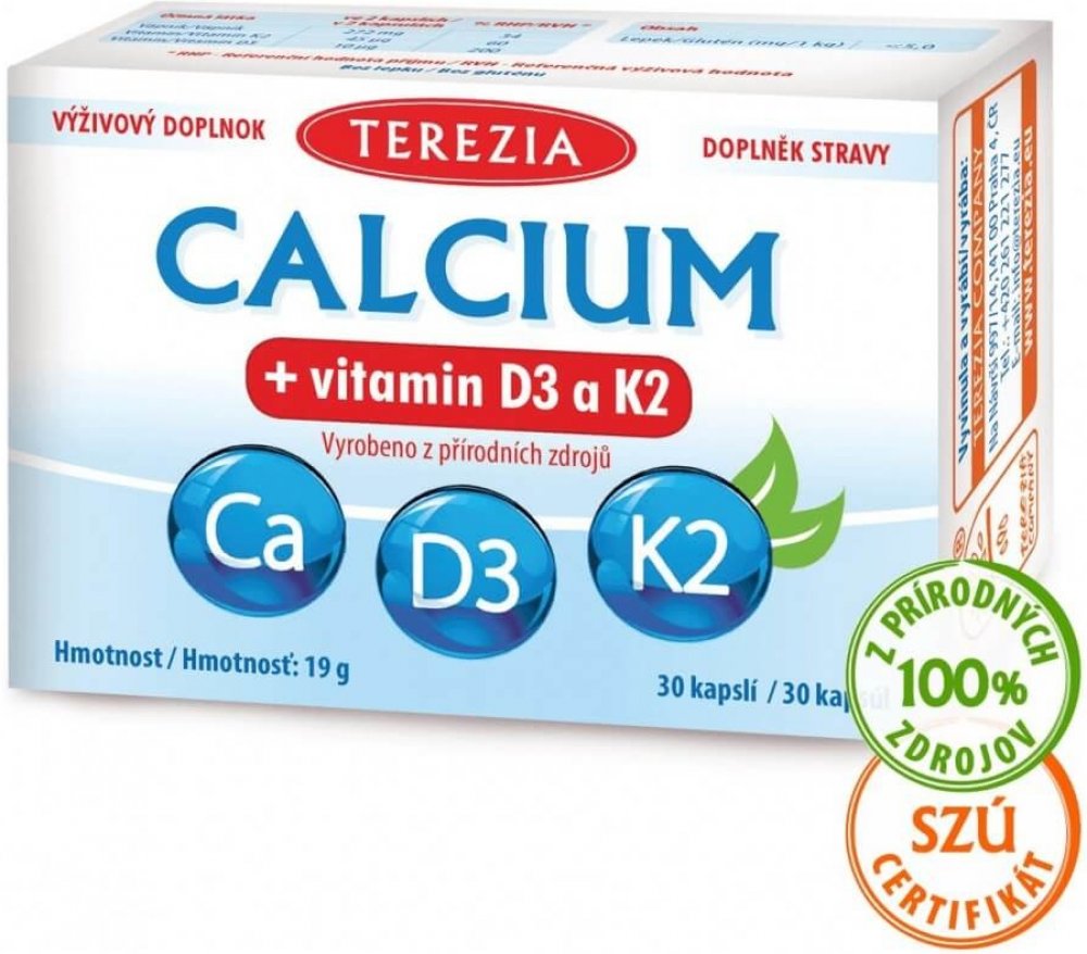 Terezia Calcium+vitamin D3 a K2 30 kapslí