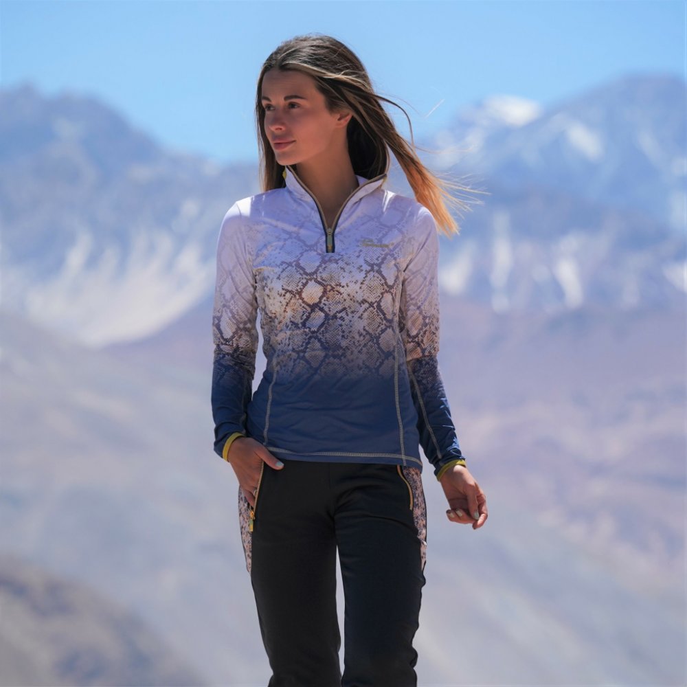 Dámský rolák s atraktivním potiskem vzoru hadí kůže, barevně laděný do modro - zlatých barev. Rolák je vhodný nejen na volný čas, ale i na posezení s přáteli, nebo do města. Je možné ho zkombinovat s mikinou SNAKE GOLD a kalhotami SNAKE GOLD, ve stejném dizajnu.
