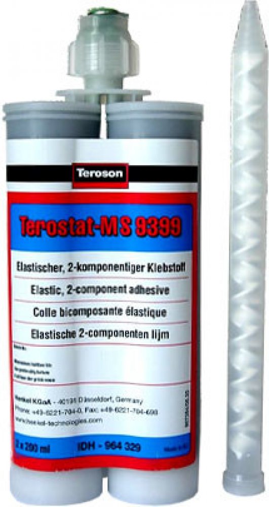 Teroson MS 9399 je vysoce viskózní, nestékavý, dvousložkový produkt vyrobený na bázi silanem modifikovaného polymeru, který vytvrzuje v celém objemu nezávisle na atmosférické vlhkosti na trvale pružný materiál. Neobsahuje rozpouštědla, silikon a isokyanáty. Teroson MS 9399 má dobrou odolnost vůči UV záření a vlivům počasí, takže může být použít jak pro interiérové, tak exteriérové aplikace.