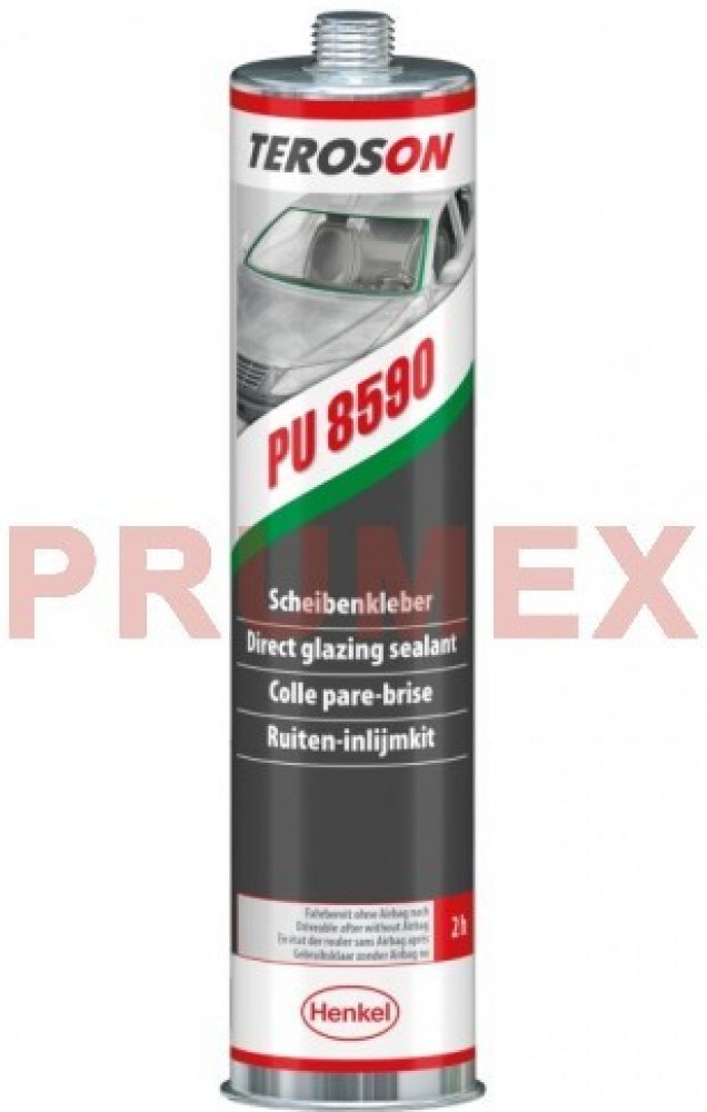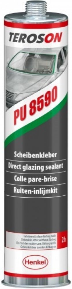 TEROSON PU 8590 (původní název Terostat 8590) Jednosložkové lepidlo / tmel pro přímé zasklívání motorových vozidel, vagónů, lodí a dalších. Na bázi: Polyuretanu, bez PVC a rozpouštědel TEROSON PU 8590 je jednosložkový, vlhkostí vytvrzující, čerpatelné lepidlo / tmel na bázi polyuretanu, který vytvrzuje reakcí s vlhkostí na měkce elastický produkt. Doba vytvoření povrchové kůžičky a doba vytvrzení závisí na vlhkosti vzduchu a teplotě, doba vytvrzení závisí také na hloubce spáry. Snížením teploty a vzdušné vlhkosti prodlužujete dobu do formování povrchové kůžičky a vytvrzení, nízké hodnoty vzdušné vlhkosti a teploty prodlužují reakci materiálu. Těsnicí lepidlo / tmel pro přímé zasklívání je výjimečný pro následující vlastnosti: ·Vysoká pevnost ve smyku, získáno při stárnutí·Krátká doba vyhotovení·Velmi vysoká rychlost vytvrzení·Vynikající adheze ke sklu, sklu s keramickým povlakem, k lakovaným povrchům i předtmeleným povrchům (s primerem TEROSON PU 8519P) ·Vynikající adheze k seříznutému původnímu PUR tmelu stejně jako k přetmeleným sklům na bázi PUR tmelu ·Dobrá adheze k plastům po použití primeru ·Není vyžadováno speciální otírání povrchu před aplikací přípravkem TEROSON PU 8519P, ·Ćistič Teroson FL+ se doporučuje pro ošetření skla. Aplikace Lepení čelních, zadních a bočních skel do karosérií motorových vozidel (osobní automobily, autobusy, nákladní vozy, kabiny traktorů a vysokozdvižných vozíků a speciální vozidla, autobusy, jachty, lokomotivy). TEROSON PU 8590 DK je vhodný zejména pro opravy zasklení, ruční produkci a maloobjemovou produkci. TEROSON PU 8590 UHV je ověřený materiál pro své speciální charakteristiky (velmi vysoká viskozita, rychlé vytvrzení). Dokonce když pracujte s velmi těžkými panely – vertikálně, lze ve většině případů omezit fixaci.