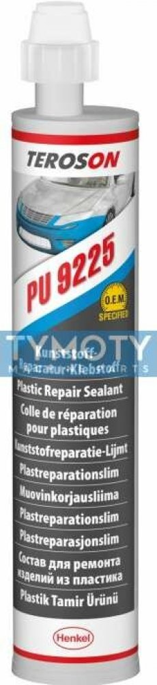Teroson Tetokal 9225 SF je dvousložkové polyurethanové lepidlo, které vytvrzuje při pokojové teplotě. Používá se v autoopravárenství pro opravu nárazníků, ozdob a jiných součástí z plastu PP, EPDM, SMC, PC, PA, ABS a PUR. Produkt je dodáván v klasických dvoukartuškách a je rychlevytvrzující. Před aplikací Terokalu 9225 SF je bezpodmínečně nutné použít primer Terokal 150. Provozní teplota: -40°C až 80°C. K čištění součásti použijte čistič Teroson FL. TEROSON® PU 9225 je dvousložkové polyuretanové lepidlo pro opravy. Typicky se používá k opravám na lakovatelných interiérových a exteriérových plastových dílech, zejména na poškození, jako jsou škrábance nebo díry v náraznících, spojlerech, krytech atd. Produkt lze vytvrzovat pomocí infračerveného světla při 60 °C nebo ohřívací podložkou Flexitherm. Snadné nanášení pomocí RUČNÍ PISTOLE TEROMIX (50 ml kartuše) nebo RUČNÍ PISTOLE TEROSON® STAKU (250 ml kartuše) a vhodný statický mixér. Pro přípravu povrchu se doporučuje použít TEROSON® VR 10.