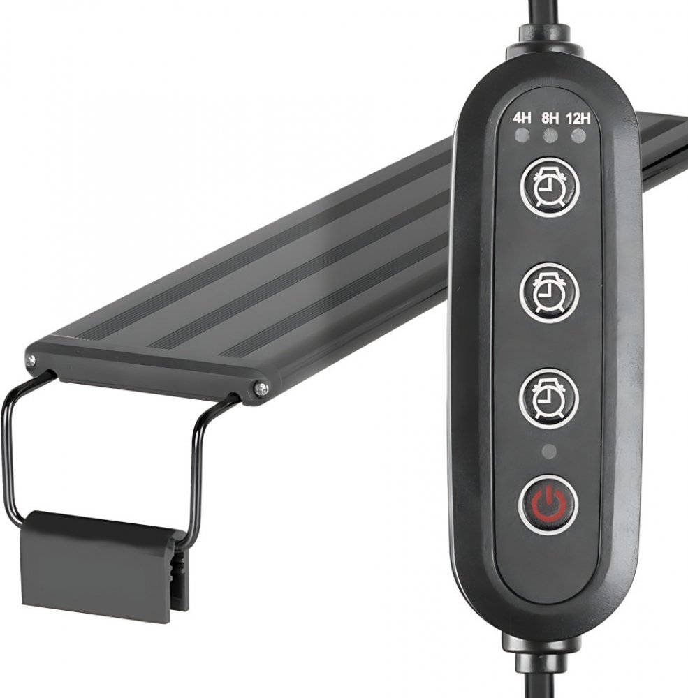 LED lampa ReptoRay – Světlo, které oživí vaše terárium! Va plants in the terrarium dream of perfect light for photosynthesis? Nebo si vaše plazy a obojživelníci zaslouží nejlepší osvětlení? ReptoRay od renomované značky Terrario je moderní LED lampa, která vytvoří ideální prostředí ve vašem teráriu. Nejdůležitější vlastnosti: - Inteligentní časovač: vyberte si dobu svícení 4, 8 nebo 12 hodin denně, abyste napodobili přirozený rytmus dne a noci. - Silné světlo pro fotosyntézu: zdravé, bujné rostliny díky odpovídající intenzitě osvětlení. - Modré LED pro lepší zbarvení: právě modré světlo zdůrazňuje červenou a zelenou, protože lidské oko lépe vnímá kontrast v této oblasti než ve světle červeném. Výsledek? Intenzivnější, sytější barvy! - Energetická účinnost při maximálním výkonu: lampa spotřebovává málo energie, ale dává spoustu světla. - Kompaktní, plochý design: moderní estetika a pohodlí při používání. - Nastavitelné, roztažitelné nožky: ideálně přizpůsobíte lampu rozměrům terária. - Ideální barevná teplota: 6500K - 8000K je optimální světlo pro rostliny a zvířata, a navíc modré LED (450-460 nm) podporují růst rostlin a zdůrazňují barvy. ReptoRay není jen lampa – je to klíč ke zdraví vašich rostlin a přirozenému cyklu dne a noci pro vaše zvířata. Vytvořte ideální podmínky ve svém teráriu a užívejte si jeho plného lesku! Časovač: Díky vestavěnému časovači můžete přesně přizpůsobit cyklus osvětlení přirozenému rytmu dne a noci. Vyberte si jeden ze tří provozních režimů – 4, 8 nebo 12 hodin denně – a zajistěte svým rostlinám a zvířatům ideální podmínky bez nutnosti ručního zapínání a vypínání lampy. To je pohodlné a energeticky úsporné řešení, které dělá vaše terárium jako malý, soběstačný ekosystém! Pro jaké terárium? - terárium se sítí nebo sklem na víku: Lampa se ideálně hodí do terária o šířce do 60 cm (maximálně 70 cm), zajišťuje rovnoměrné osvětlení na celé ploše. Díky správnému úhlu dopadu světla efektivně osvětluje boky terária o rozměrech základny 60x40 cm a skvěle si poradí i ve vysokých nádržích – až do 100 cm výšky! - terárium s želvou, otevřené a bez víka: Nastavitelné nožky umožňují stabilní montáž na okraji otevřeného terária o šířce od 50 do 60 cm. Technické údaje: - výkon 15W - barevná teplota bílé LED: 6500K - 8000K - délka vlny světla modré LED: (450-460 nm) - rozměry: 50x7x6 cm (s nožkami) - délka kabelu: 150 cm