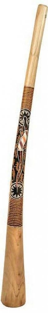 Didgeridoo vyrobené ze dřeva stromu Teak. Disponuje délkou 150 cm. Nástroj je zdoben malbou s domorodými motivy, provedenou ve stylu Dotpaint. Povrchová úprava: olejový lak v barvě Natural. Didgeridoo je starý domorodý dechový nástroj původních obyvatel australského kontinentu.Barva a dizajn jsou náhodné.