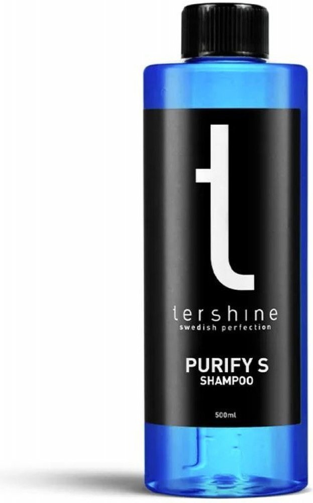 Keramický autošampon Tershine Purify S - Shampoo Tershine Purify S se stal vítězem testu (Technology World June 2019). Autošampon Purify S je vysoce účinný tzv. „keramický“ šampon, který dodá vašemu vozu "šílený" lesk. Díky obsahu SiO2 nejenže čistí, ale také pomáhá zvyšovat stávající ochranu laku na novou úroveň. Od roku 2021 byl tento šampon nově aktualizován na verzi V2, která dodává ještě větší lesk, pěnu a zrychluje odtok vody z laku. To, co odlišuje šampon od jiných šamponů na trhu, jsou čisticí vlastnosti spolu s úplně oslnivým leskem, který poskytuje po umytí auta. Purify S funguje stejně jako klasický šampon Tershine Purify, ale dodá vašemu laku vyšší úroveň lesku, která je skutečně neuvěřitelná. Pomáhá vylepšovat povrch pod ním a je vyroben tak, aby mohl přilnout ke všem druhům ochrany laku. Purify S napomáhá zvýšení rychlosti odtoku vody a zároveň zanechává lehkou keramickou vrstvu. Trvá hodinu, než se dosáhne maximálního lesku, protože vyžaduje určitou dobu vytvrzení. Šampon vytváří hustou a velmi jemnou pěnu, díky níž mycí rukavice dokonale klouže po povrchu laku. V běžném kbelíku s vodou stačí použít jen minimum šamponu (ale zkuste, co vám vyhovuje), ředění tohoto šamponu je totiž 1:1000. Šampon můžete používat i v napěňovači jako předmytí. Doporučení výrobce - samotný výsledný lesk je magický, ale pro ještě zvýšení lesku a odvodu vody můžete použít keramický sealant Refract nebo lesklé monstrum Apex+ jako sušicí prostředek. Vše tak posunete na ještě vyšší úroveň! Hlavní vlastnosti Keramický šampon. Poměr ředění 1:1000. Prémiový autošampon. Obsahuje SiO2 - tzv. keramický šampon. Po mytí následuje extrémní lesk. Super odvod vody po mytí. Vysoce pěnivý. Návod jak používat Při mytí používejte v ideálním případě vlažnou vodu. Nařeďte šampon v poměru 1:1000 a pomocí tlaku vody vytvořte v kbelíku pěnu. Na 20litrový kbelík bude stačit zhruba 20 ml šamponu. Vozidlo umývejte lehkými tahy po karoserii a v případě potřeby mycí rukavici propláchněte v čisté vodě. Auto umývejte vždy shora dolů. Následně opláchněte proudem vody a osušte kvalitním sušicím ručníkem. Po vysušení se lesk postupně zvyšuje po dobu prvních 12 až 24 hodin. O značce Tershine Tershine je švédská značka prémiové autokosmetiky, která si získala oblibu po celé Evropě díky své jednoduchosti, efektivitě a prvotřídní kvalitě. Produkty Tershine jsou vyvíjeny s důrazem na funkčnost, ekologii a uživatelský komfort - sází na přírodní složení, neobsahují škodlivé látky jako PFAS nebo VOC a jsou často zcela bez výstražných symbolů. Sortiment zahrnuje vše od špičkových detailerů, šamponů, čističů až po lešticí pasty a doplňky, které spojují vysokou účinnost s příjemnou vůní a stylovým designem. Tershine je ideální volbou pro každého, kdo chce péči o auto posunout na vyšší úroveň bez zbytečné chemie, bez kompromisů.