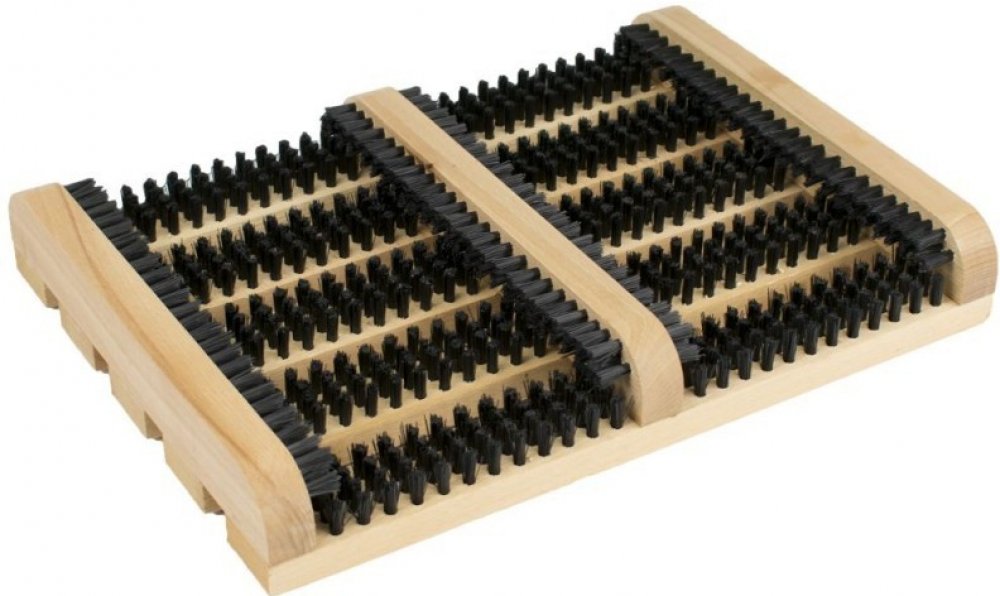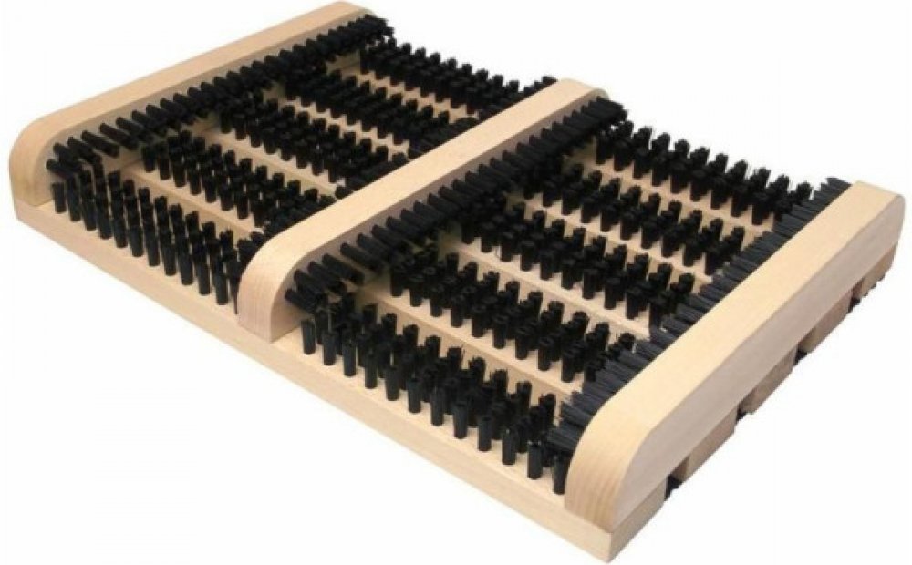 Tato rohožka slouží nejen jako estetický prvek, ale také jako účinný škrabák na obuv. Je navržena tak, aby pomáhala odstraňovat nečistoty z bot před vstupem do domu či bytu, čímž přispívá k udržení čistoty v interiéru. Dřevěné provedení spolu se štětinami ze syntetického vákna dodává rohožce robustní vzhled a zajišťuje její dlouhou životnost.