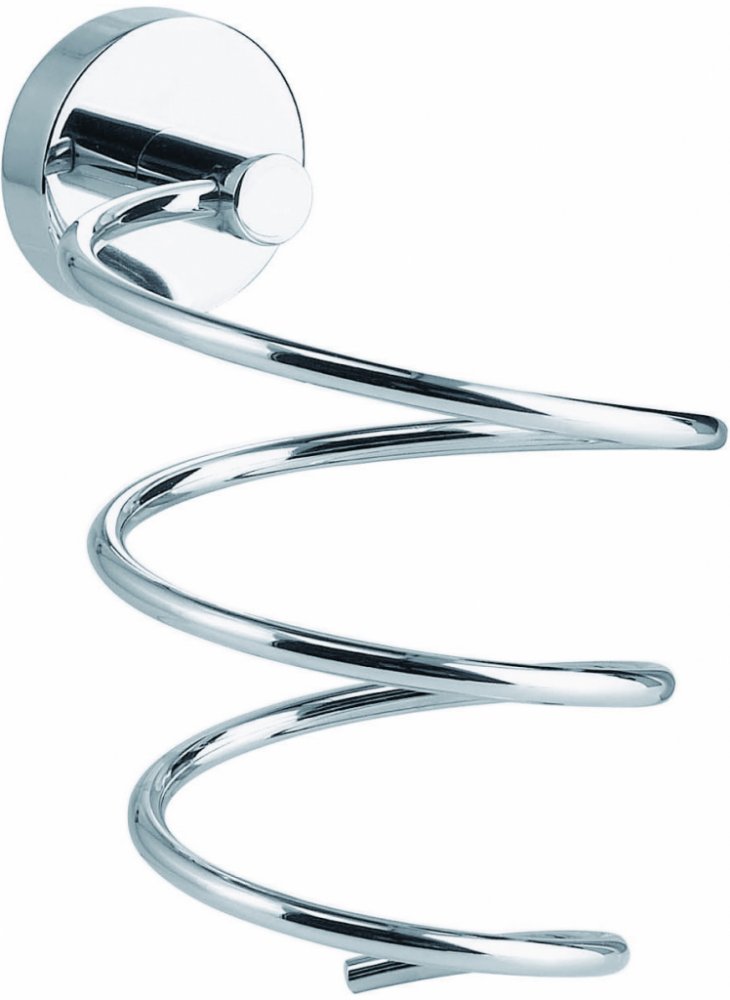Držák na fén tesa® Smooz je pozoruhodný koupelnový doplněk v elegantním spirálovém provedení, doplněném vysoce lesklým chromovaným povrchem. Držák je pohodlný i atraktivní. K jeho montáži je použito lepicí řešení, takže připevnění nevyžaduje žádné vrtání. Po 12 hodinách zasychání však drží stejně spolehlivě jako při použití jakékoli běžné metody.