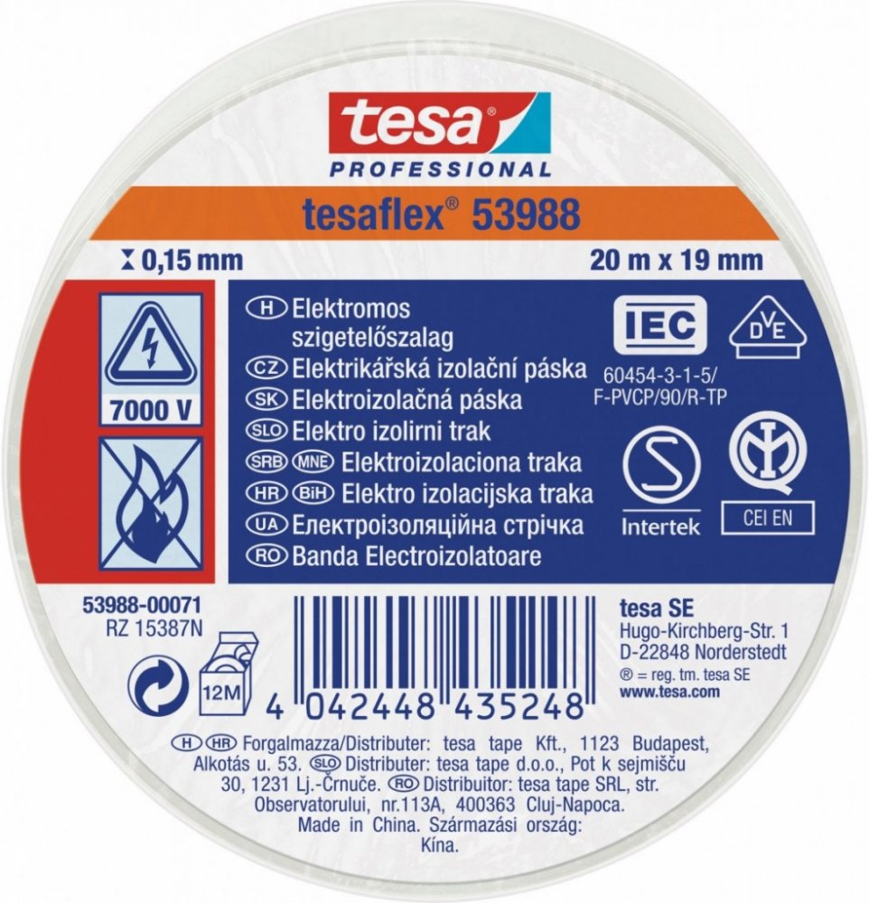 Tesa elektroizolační páska 19 mm x 20 m bílá
