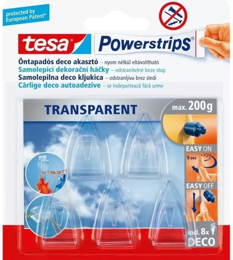 tesa Háčky lepící Powerstrips deco, průhledné, 5 ks