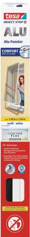 TESA Hliníkový rám se sítí proti hmyzu, do okna, bílý rám, antracitová síť, 1,4m x 1,5m 55196-00000-01
